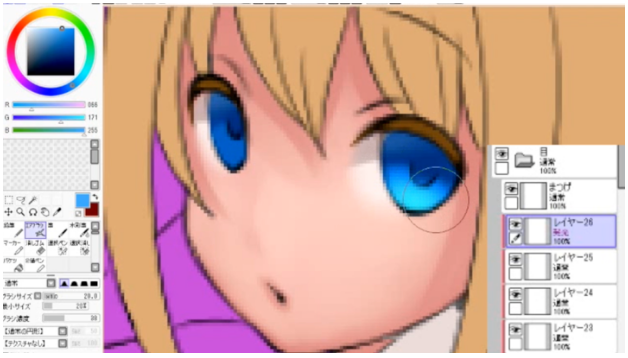 在完成时放上高光,瞳孔的涂抹就完成了。