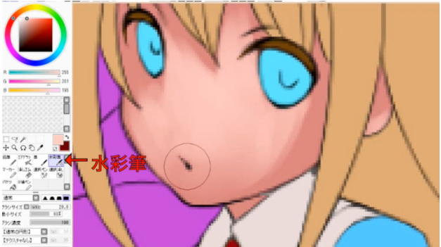 和皮肤一样,用深色涂抹后再画出明亮的部分,用水彩笔工具使其熟悉。