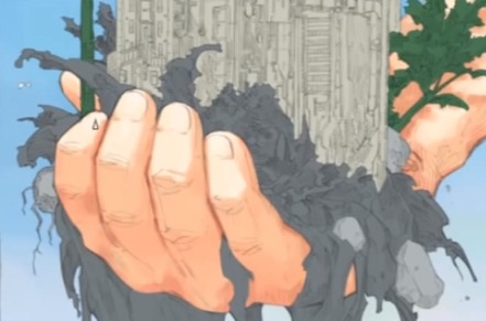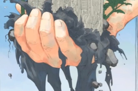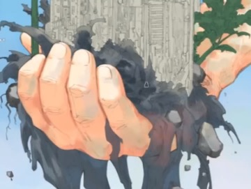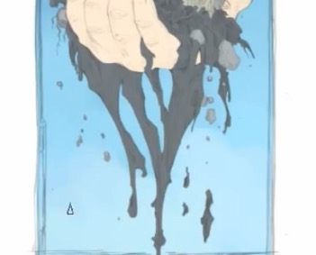 在手上流动的水的部分,用斯波特捡到的手的颜色吧。