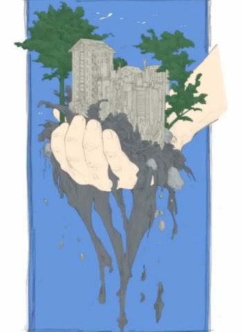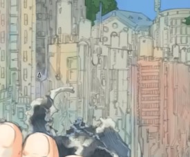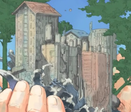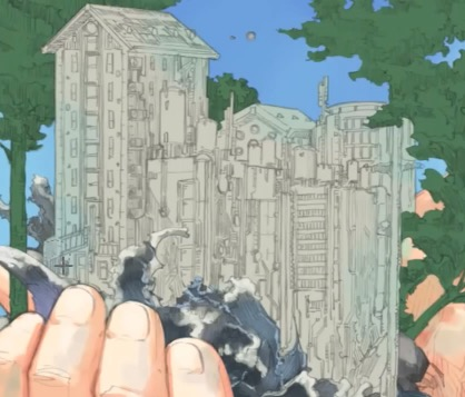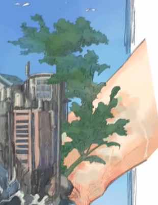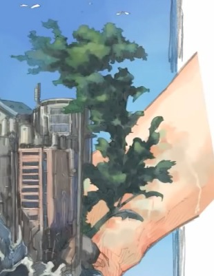 首先放入周围的反射光吧。给建筑物一点一点地增加天蓝色。