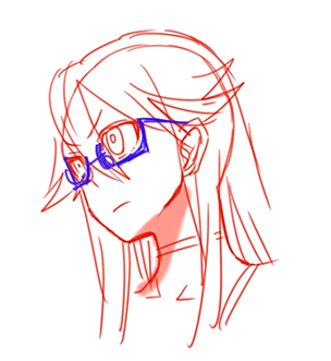 可以通过绘制眼镜来确认素描的偏差。不能漂亮地戴眼镜的时候素描太疯狂了重新审视一下吧。