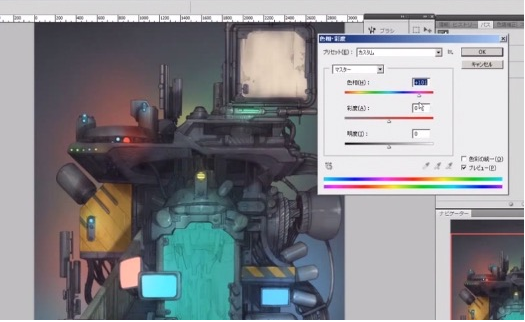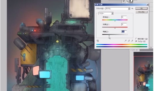 因为飞得太白了,所以用“色相·彩度”来调整吧。这样一来,面上的亮点就完成了。