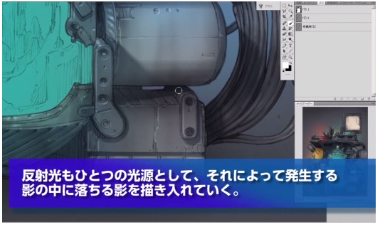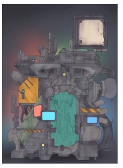 放完高光的边缘后,再进行阴影的绘制,以突出机器的立体感。