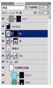 在基础图层下创建新图层,并用刷子粗略涂抹,同时考虑到监视器等光线。