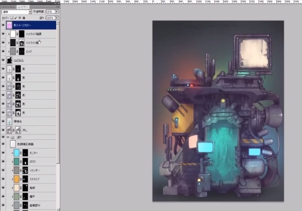 在进入真正的工作之前,先做好分层的准备。首先,准备涂满机器整体范围的基础图层。