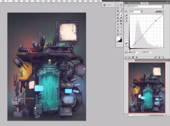 接下来,在顶部创建新图层,将绘图模式更改为“叠加”,获取整个机器的选择范围,并用刷子涂抹监视器等光线。