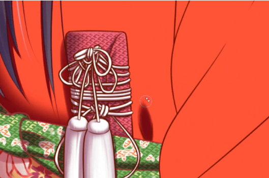 因为和服有华丽的图案,所以即使画出细微的影子也会变得难以理解。用比平时更深的颜色大胆地涂吧。