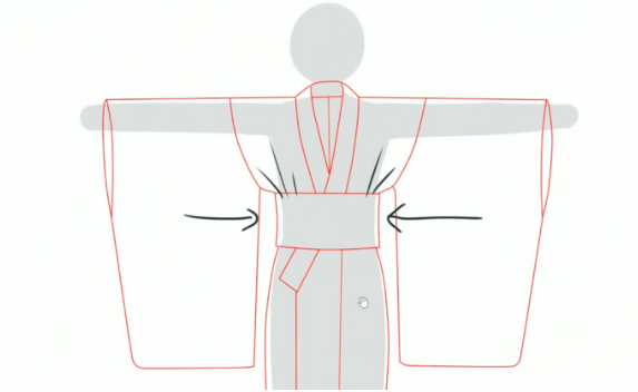 和服即使横向张开手臂也不会从原来的形状发生太大的变化,所以不能起皱。