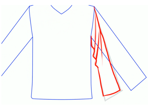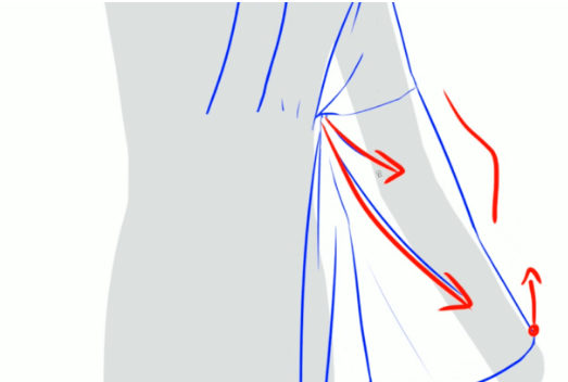 袖子长的部分形成的皱纹参考毛巾等皱纹吧。抬起红点的一边可以很容易地再现皱纹。
