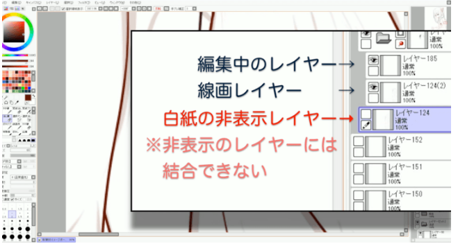 当您将绘制的线条结合到线条图层时,请在线条图层下方创建隐藏的图层。