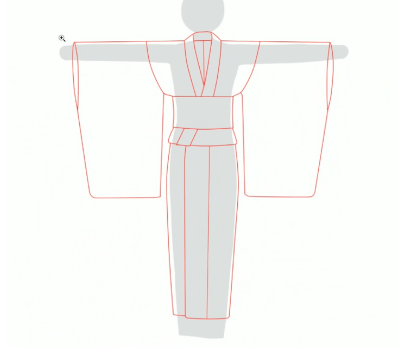 因为和服的花纹很复杂,所以首先只集中在形状上,考虑一下皱纹的形成方法吧。