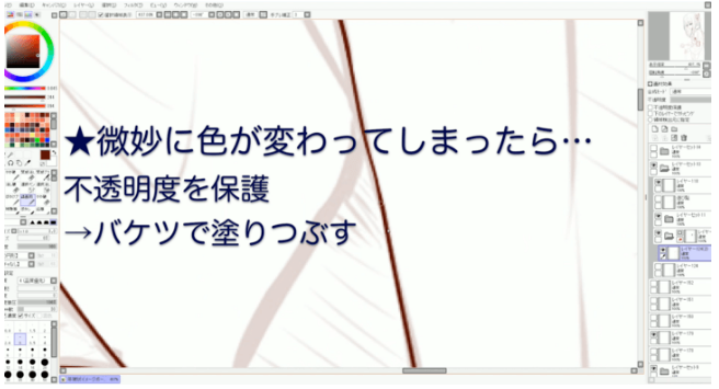 如果使用自由变形,线的颜色会发生微妙的变化。此时,保护不透明度,然后用桶工具填充线条。
