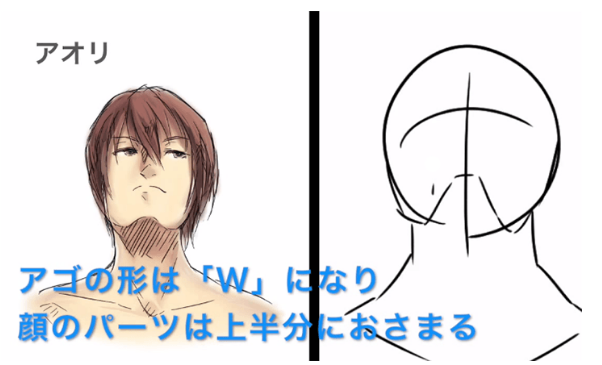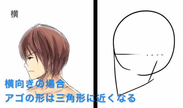 斜向的脸的下巴的形状,是正面的时候和正侧面的时候的正好中间的形状。