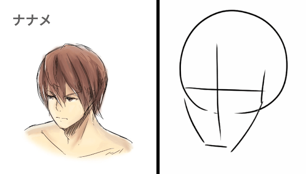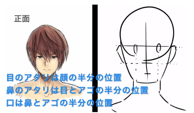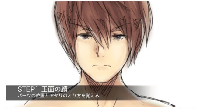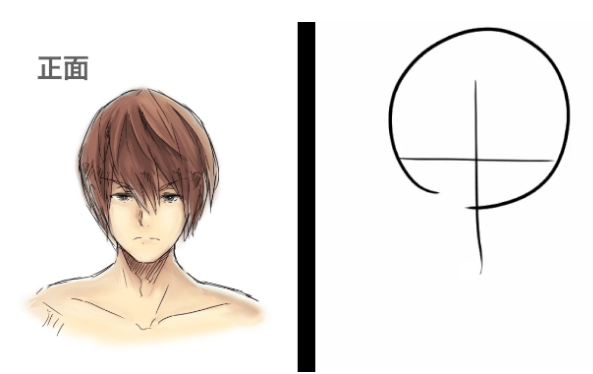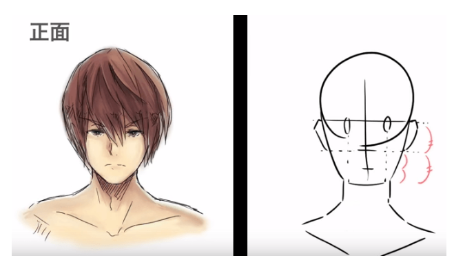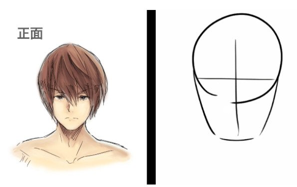 首先,我们来解说一下从正面看到的描绘男性脸的方法。请一定要掌握在这个讲座中画脸的诀窍哦!