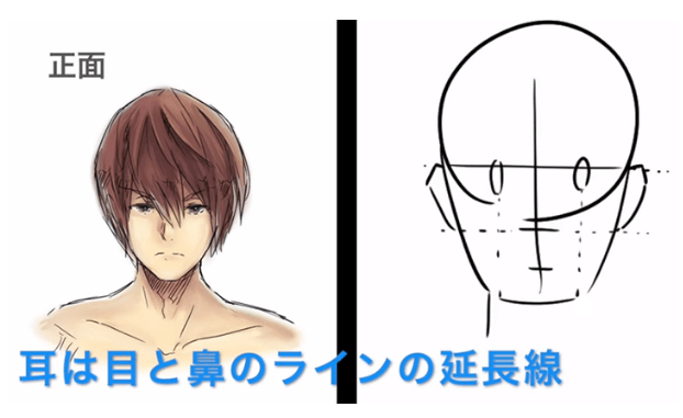 耳朵的位置根据眼睛和鼻子线条的延长线来决定吧。