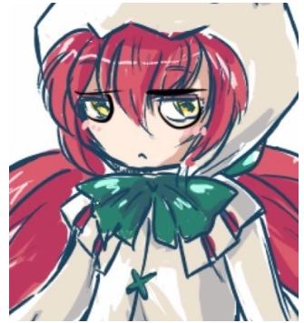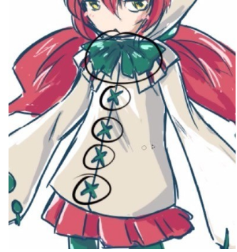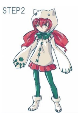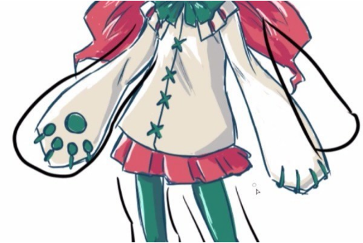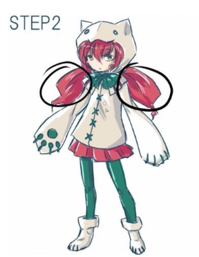 像双马尾一样垂着两串头发。这是对剪影有很大影响的重点,所以要好好地按住特征。