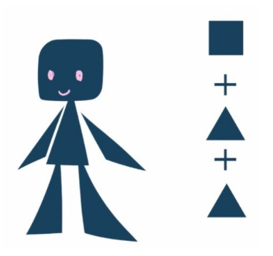 头的形状是一样的,试着把躯体和手脚换成三角形。