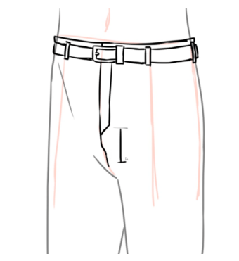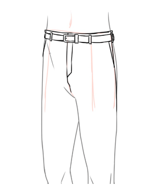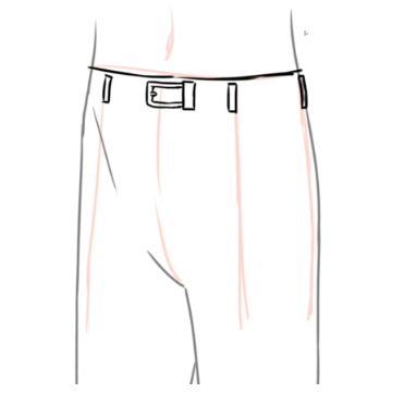 将皮带扣画在身体的正中央,然后将皮带孔画在其旁边、腿的中心和侧面。