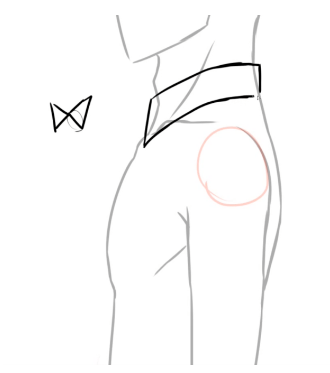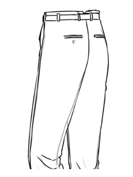 把口袋画在屁股上一点。左边口袋里有很多扣子。