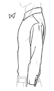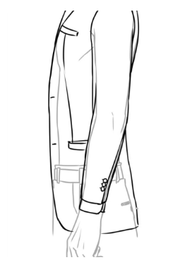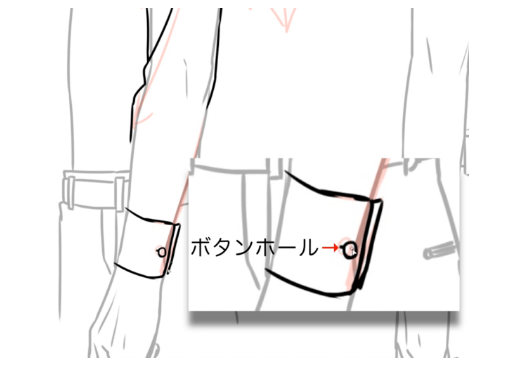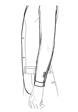 袖口从旁边看就能看到纽扣。也别忘了画扣眼吧。