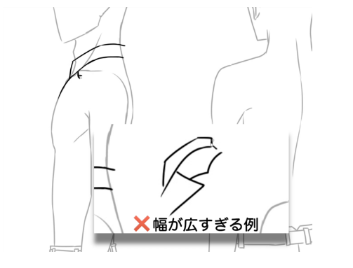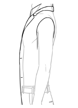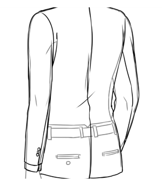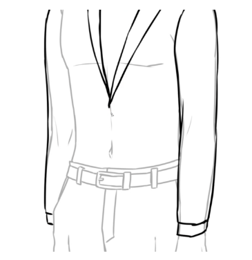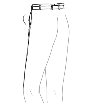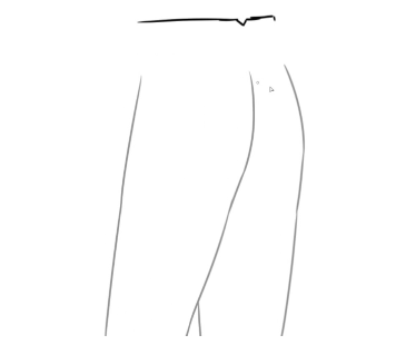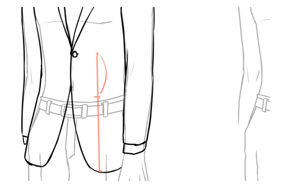 背侧针脚的线条,在腰部部分稍微弯曲以表现皱纹。