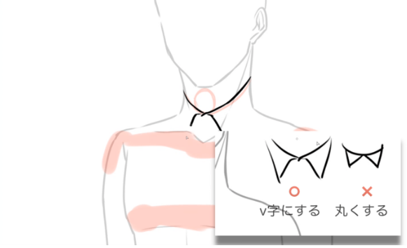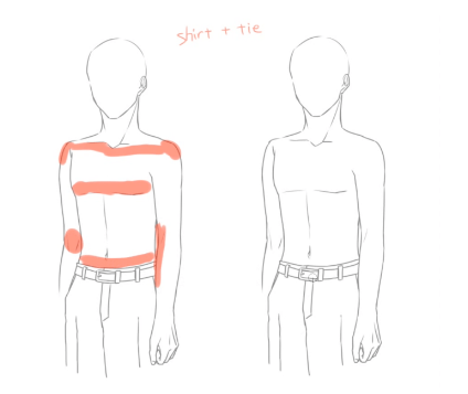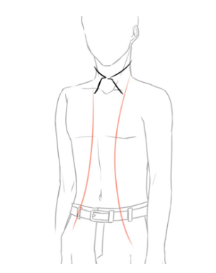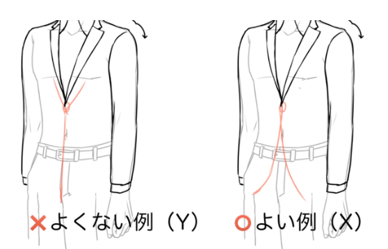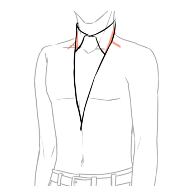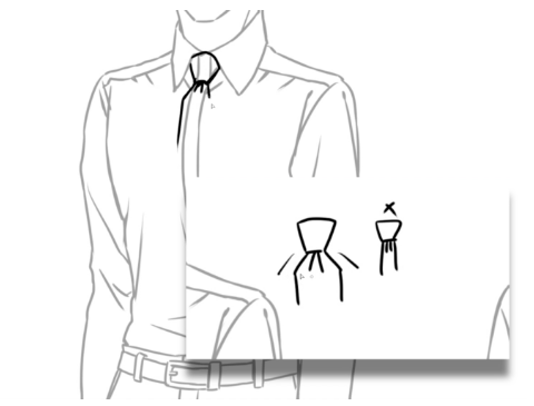 要注意的是,画领带时会给人一种平淡的印象。打结是圆形的,呈现立体感。在结出来的部分加上隆起,画得稍微扩大一点。