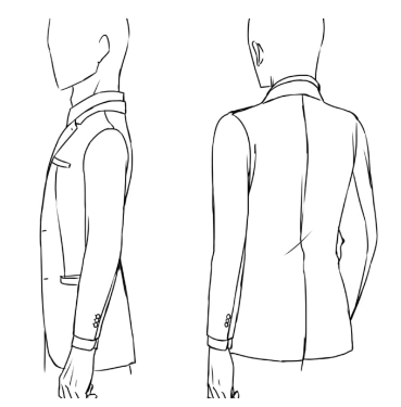 将夹克的第一个按钮的位置定在略低的下方,与之相配合,画出领子的内侧。