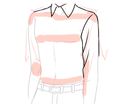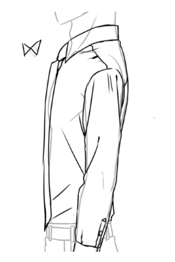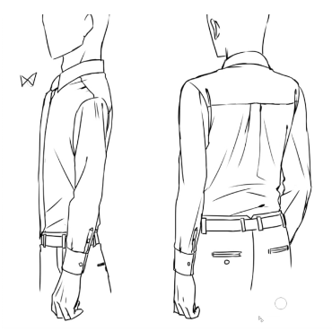 接下来,我来介绍一下从后面看到的衬衫的画法。把胳膊直下去的话腋下的部分会有皱纹。