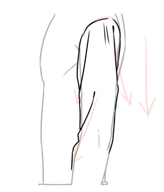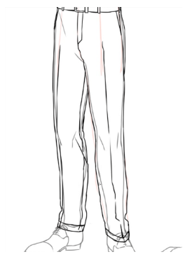在腿的中心画一个折痕。线根据皱纹弯曲吧。