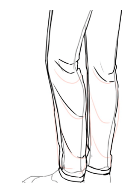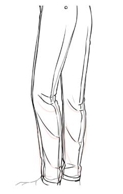 因为后面的小腿部分容易起皱,所以要有重叠的意识来画吧。