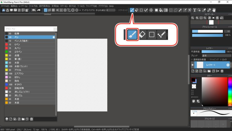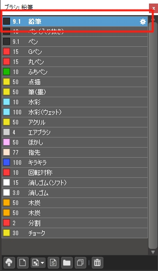 放置新画布后,选择画笔工具并选择“铅笔”画笔。