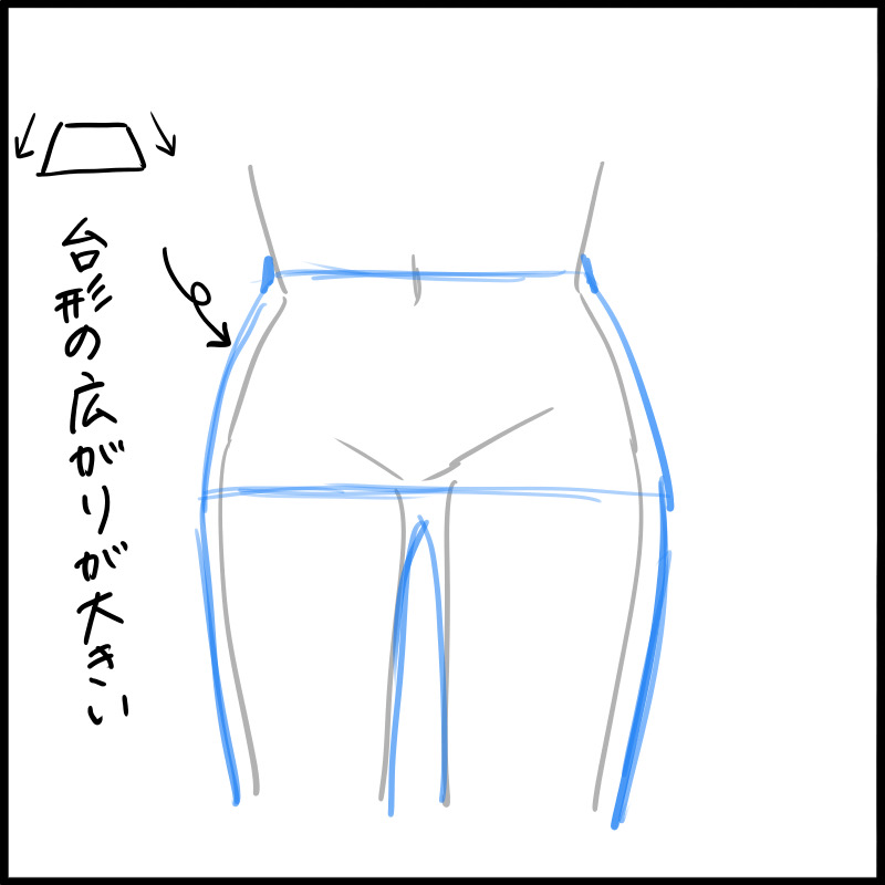 先画一条线盖住你的腿,然后从上升到腰部画一个梯形。