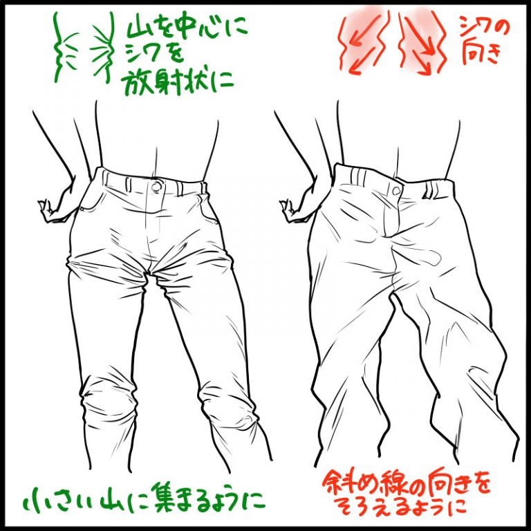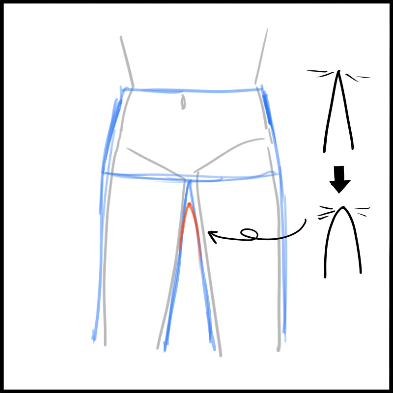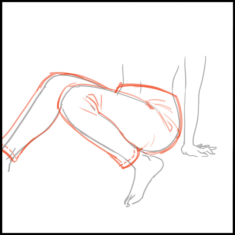 现在让我们以以下姿势绘制裤子。