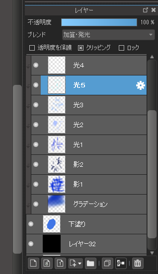 将图层名称设置为“光3”,并将其设置为[相加和发光]。