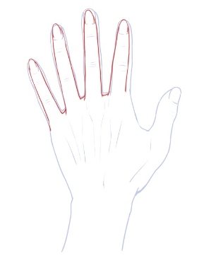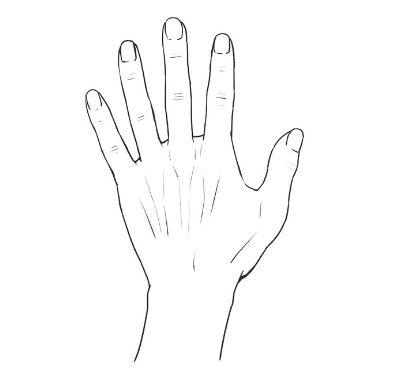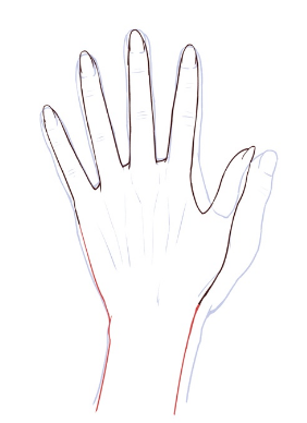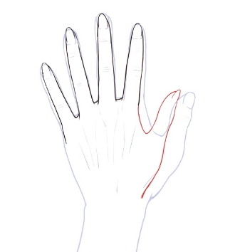 重点:在草稿中画一次拇指向左移动就行了。如果有意识地描绘线条柔软的s形,会更有女人味。
