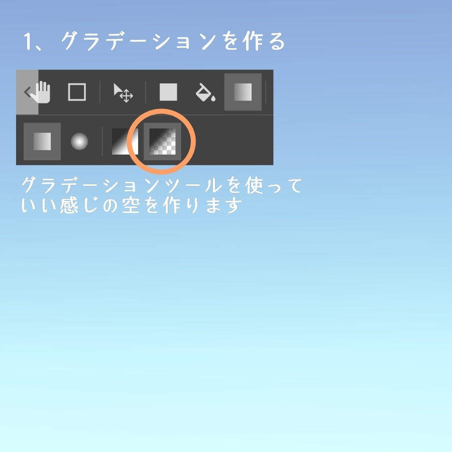 1、制作渐变,使用渐变工具,创造一个感觉良好的天空