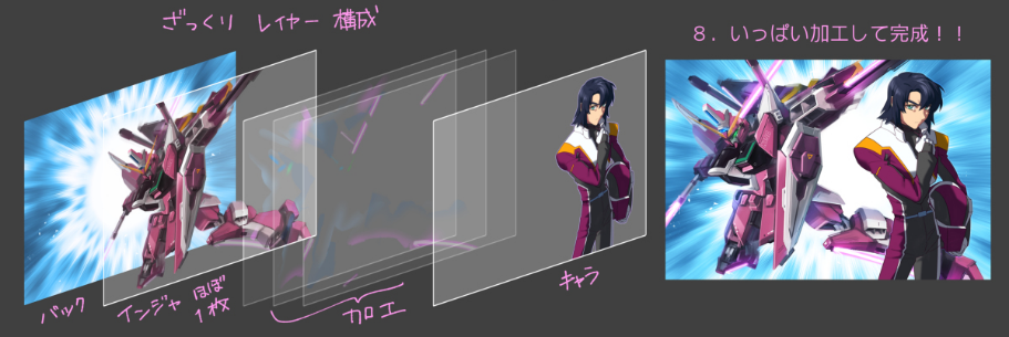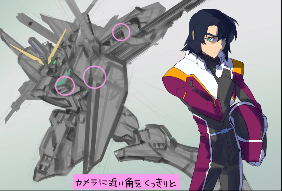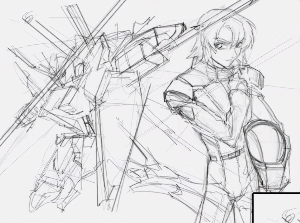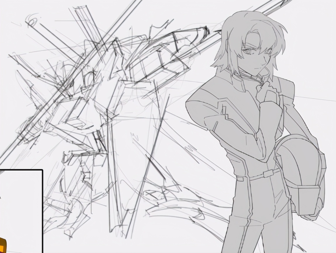 1、粗略决定MS和角色各自的姿势、整体构图。