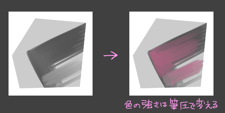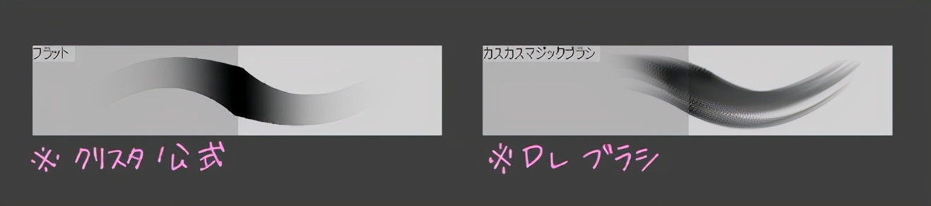 以此为基准,将平笔中最浓的阴影(AO)和不想隐藏的直线画得很浓。顺便说一下,使用的平笔是这样的感觉。颜色混合为ON的话会留下好印象的笔迹。