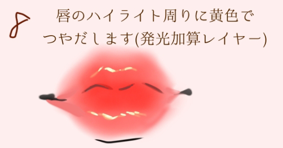 8、嘴唇的高光周围是黄色 光泽(发光加法层)