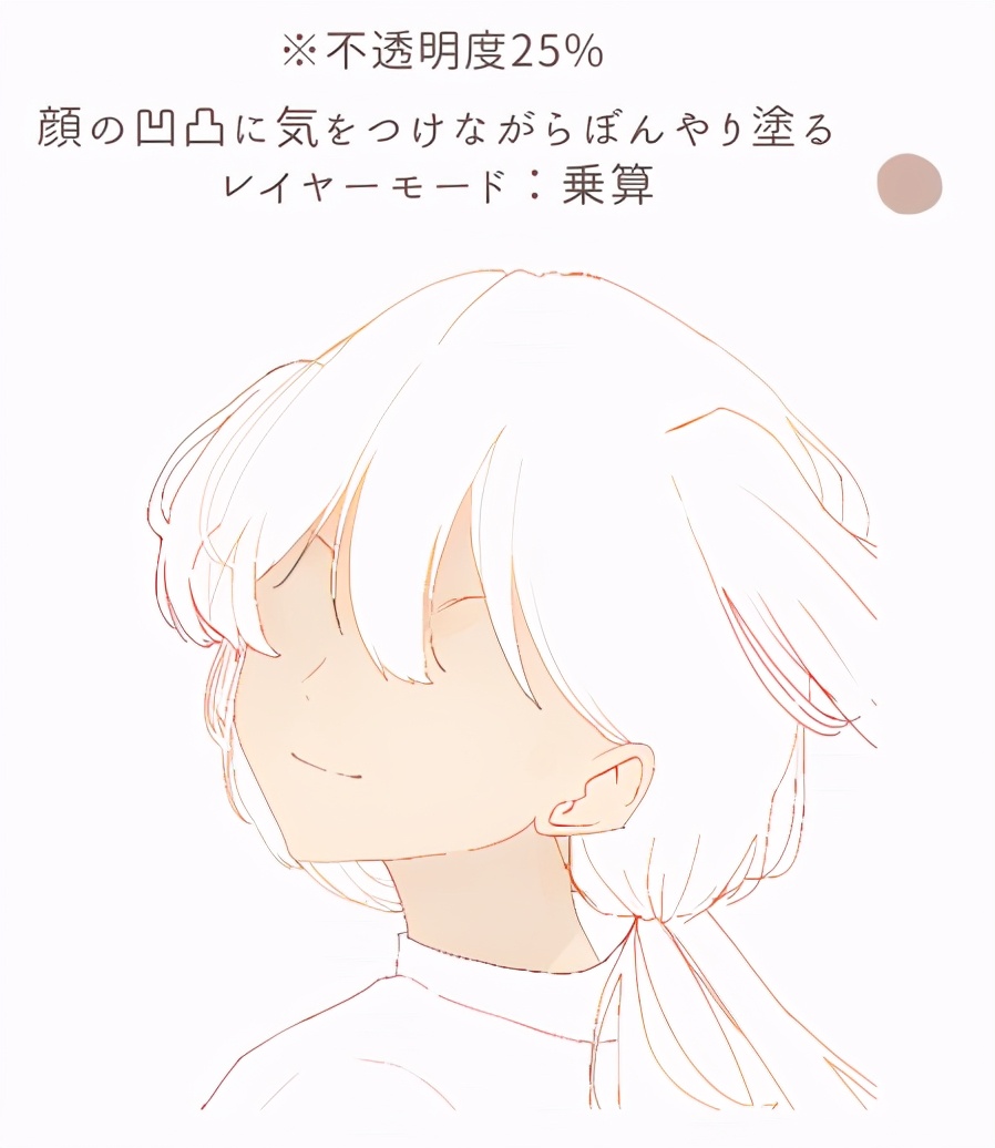 不透明度25%一边注意脸部凹凸一边模糊地涂图层模式:乘法