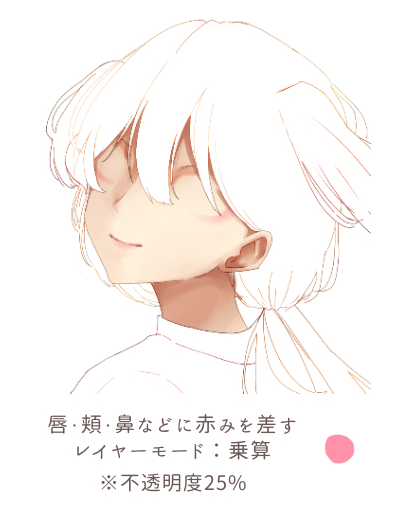 嘴唇、脸颊、鼻子等处发红图层模式:乘法不透明度25%