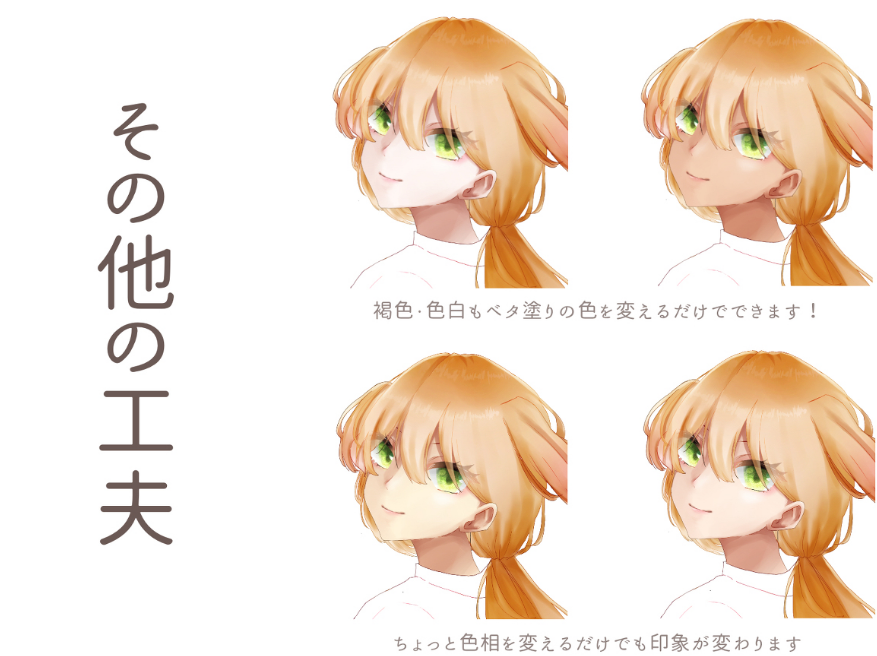 其他的工夫褐色和白色也只需改变底漆的颜色就可以了!即使只是稍微改变一下色调,印象也会改变