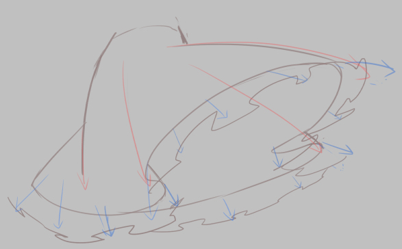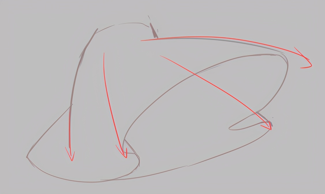 以红色箭头为基础,同样的方法在脑中抓出荷叶边的方向(蓝色箭头)顺着蓝色箭头的方向补线