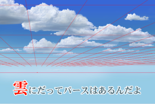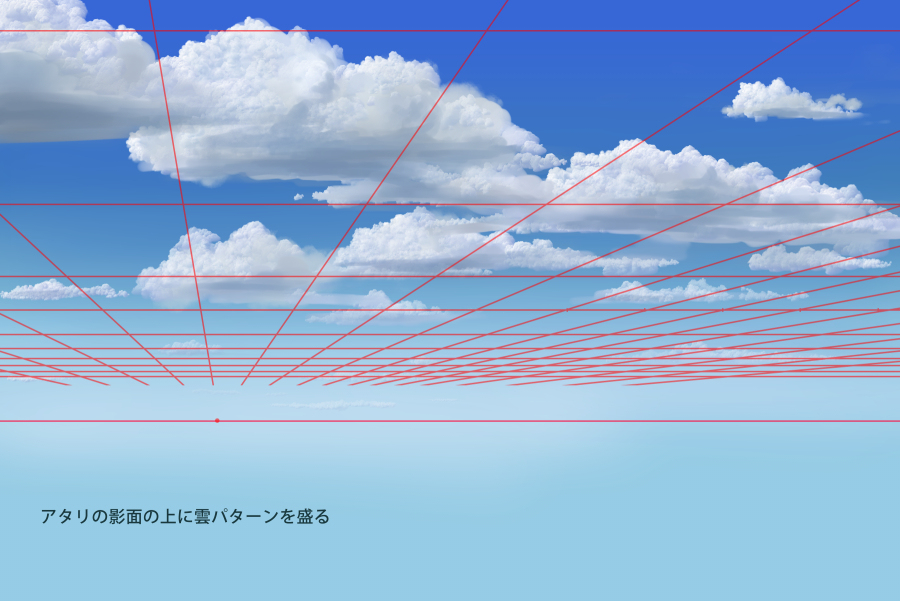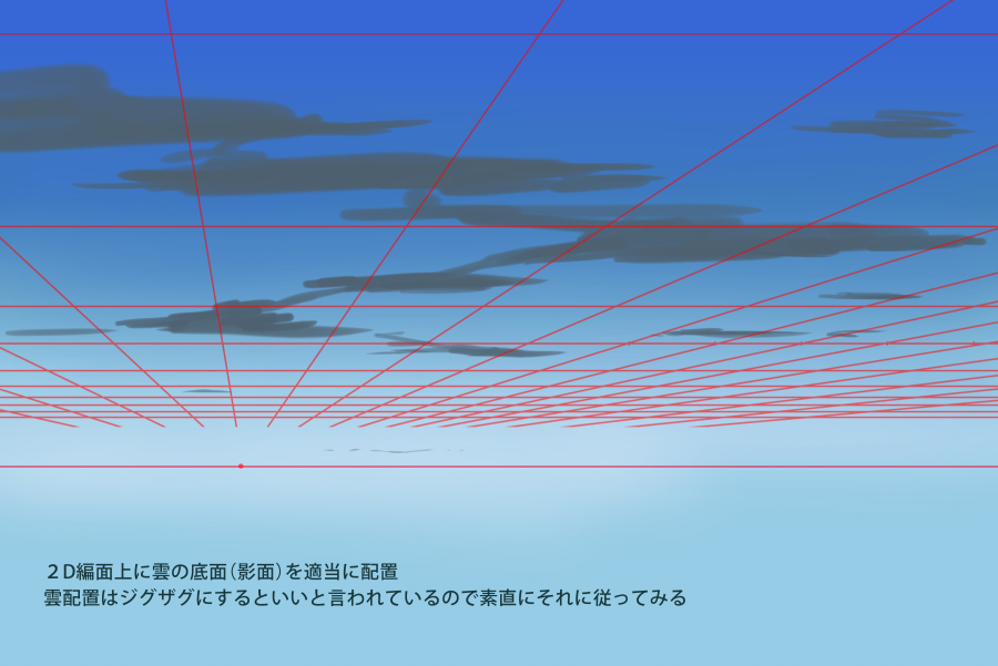 据说在2D编面上适当地将云的底面(影面)配置成锯齿状比较好,所以要坦率地遵从它