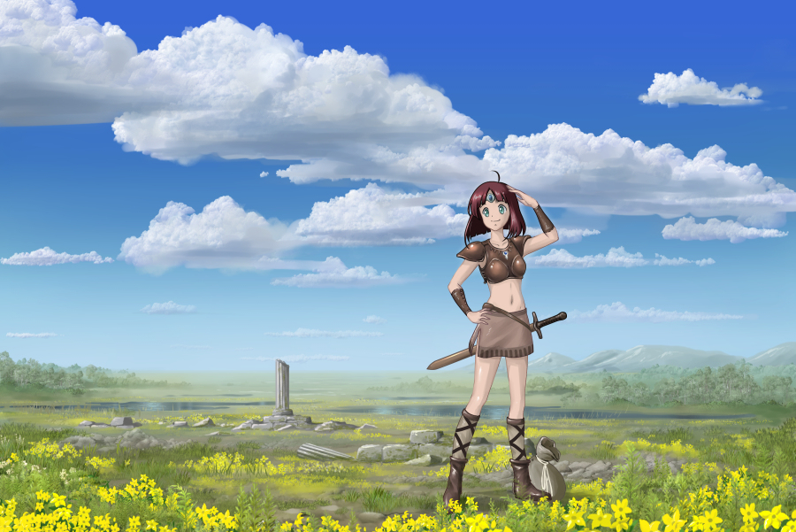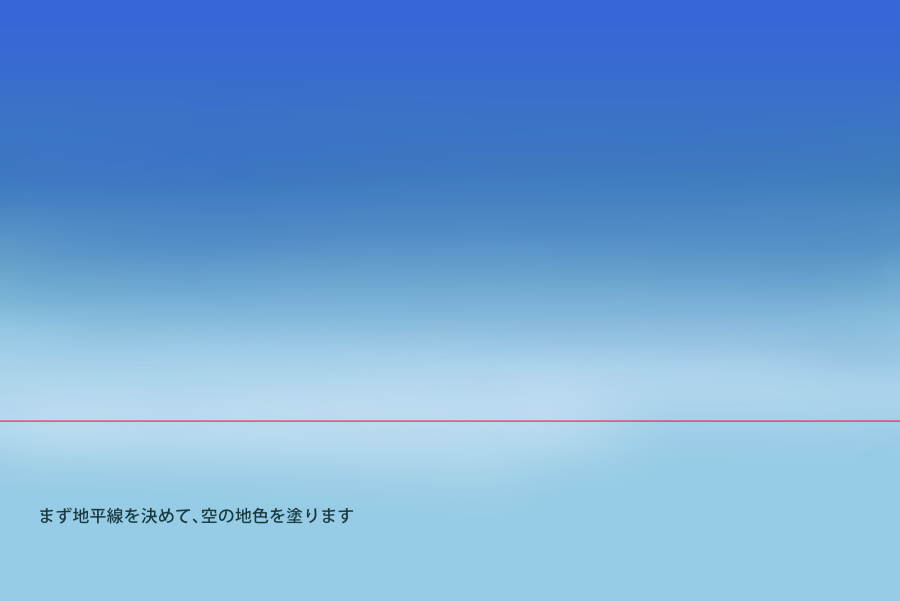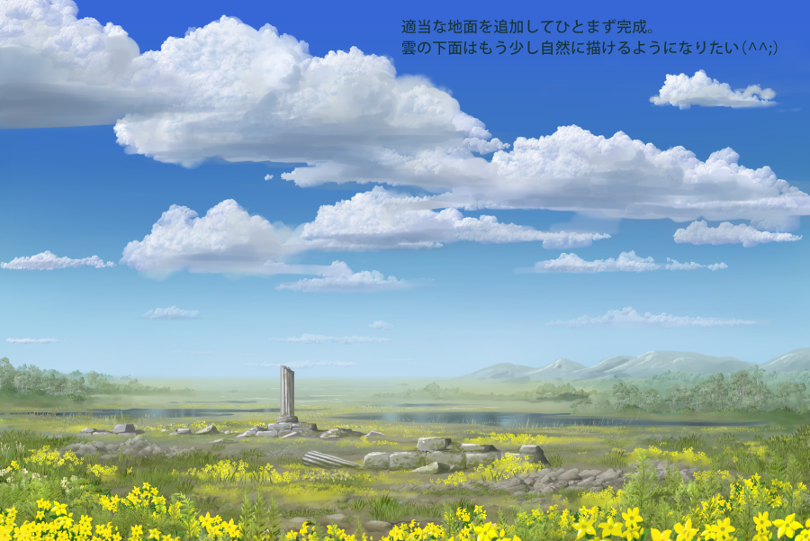 追加适当的地面暂且完成。我想云的下面能画得更自然一点(嘿嘿; )