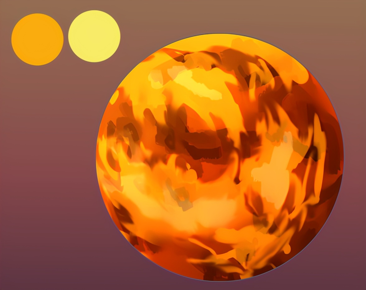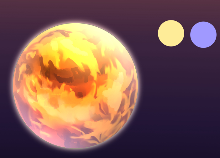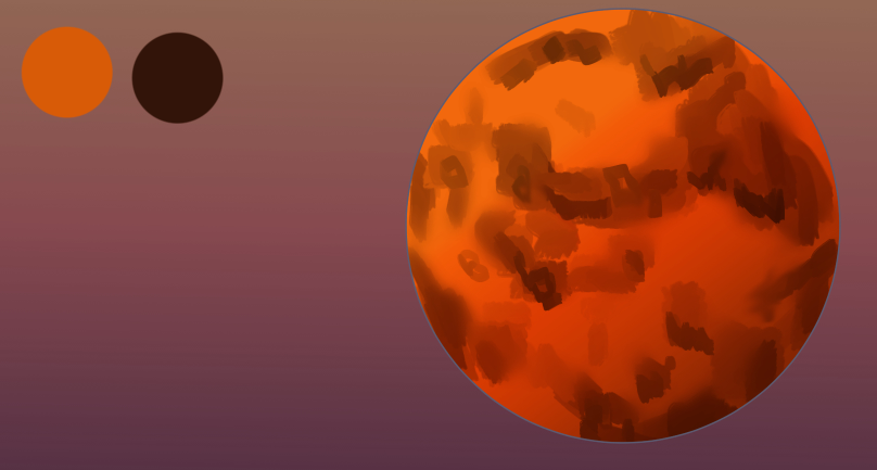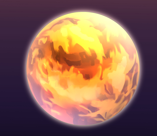 +α:用喷笔斜上方呈淡黄色(加法发光)下面加入浅蓝色(加法发光)会增加球体感。 另外,如果用高斯模糊50左右的时间复制下面的火星的话能表现出光辉,看起来也很漂亮(加法发光)不透明度由各自调整