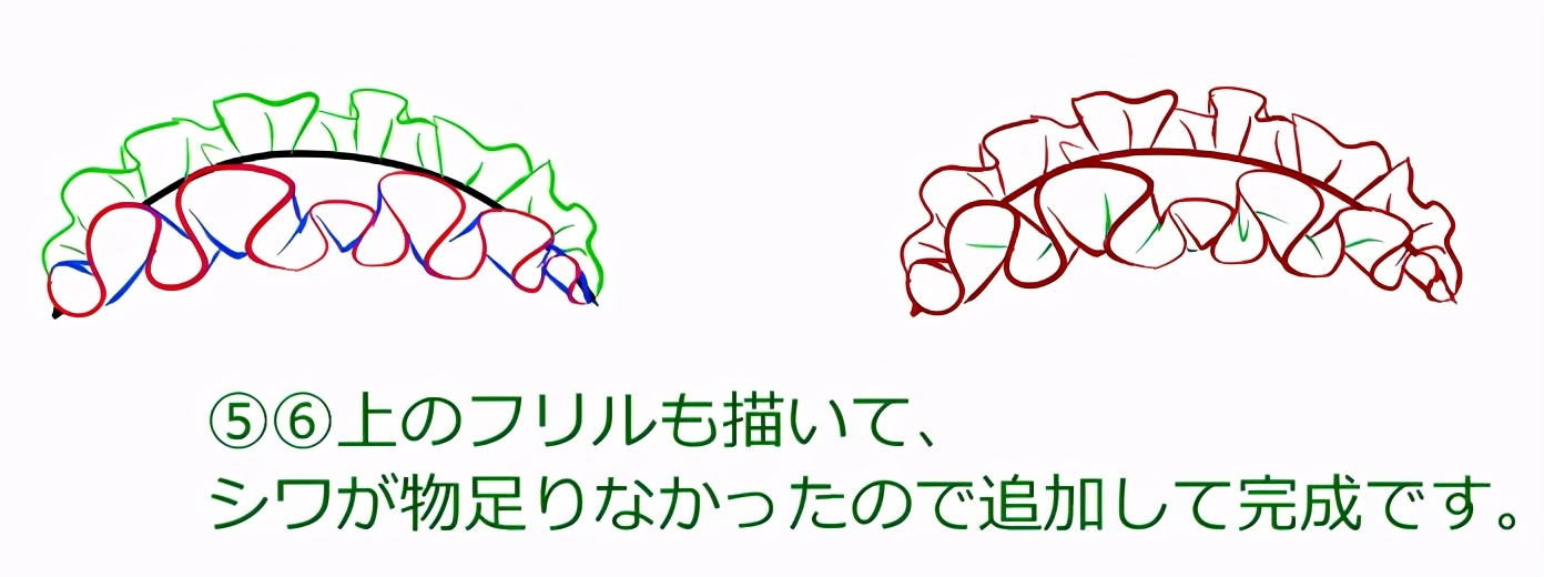 上面的褶边也画好了,因为皱纹不够所以追加完成。