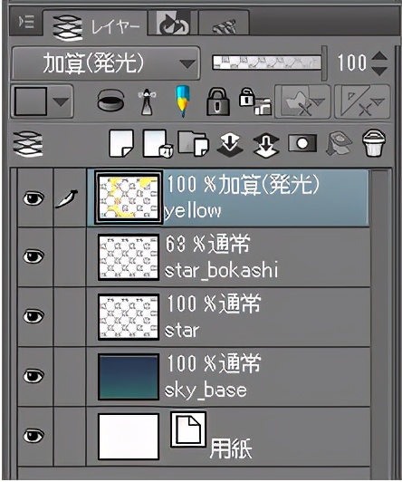 在示例中,您叠加了图层模式,用喷笔涂抹了黄色,并将图层的不透明度降低到45%,以进行融合。虽然很难理解,但是像这样淡淡的软软的,载着黄色