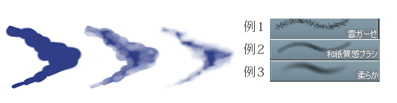 8. 画星云将7画的星云削成看起来像星云的样子。基本上是用例1、例2那样粗糙质感的刷子从边缘开始削,边缘不能完全削掉而很明显的地方,用例3那样的喷笔轻轻削边缘。