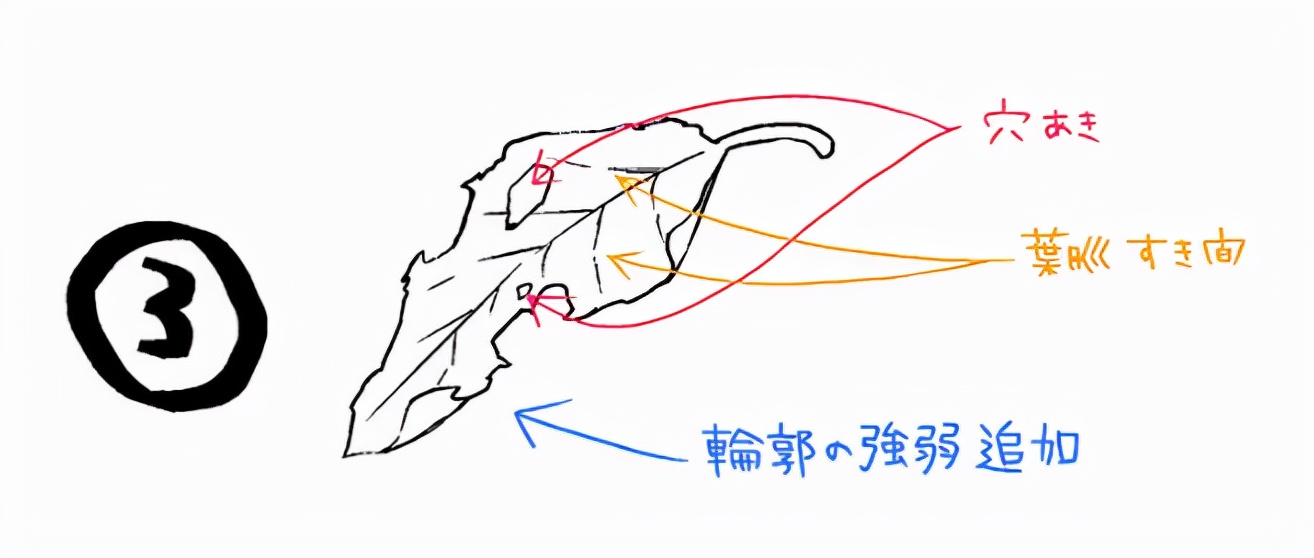 3、修改线描。加上孔穴,在过于美丽的叶脉上留出缝隙,使轮廓过于均匀。